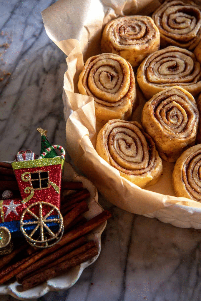 Soft, fluffy, and loaded with just a little too much cinnamon sugar. Baked to perfection and slathered with a creamy, sweet, dreamy cream cheese icing. These are CLASSIC cinnamon rolls, but way better than the Pillsbury rolls I grew up eating (and loving—because let’s be honest, those are good too). I added brown butter and a splash of hazelnut liqueur because, trust me, that combo tastes like Christmas in every bite.