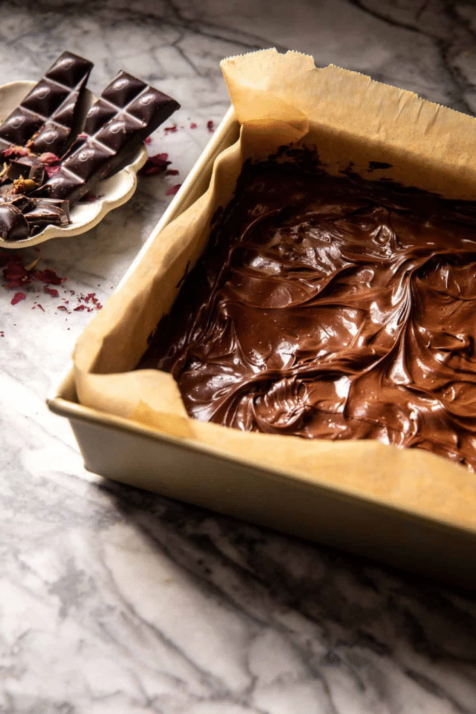 Press the dough into a parchment-lined 9×9-inch square baking dish.