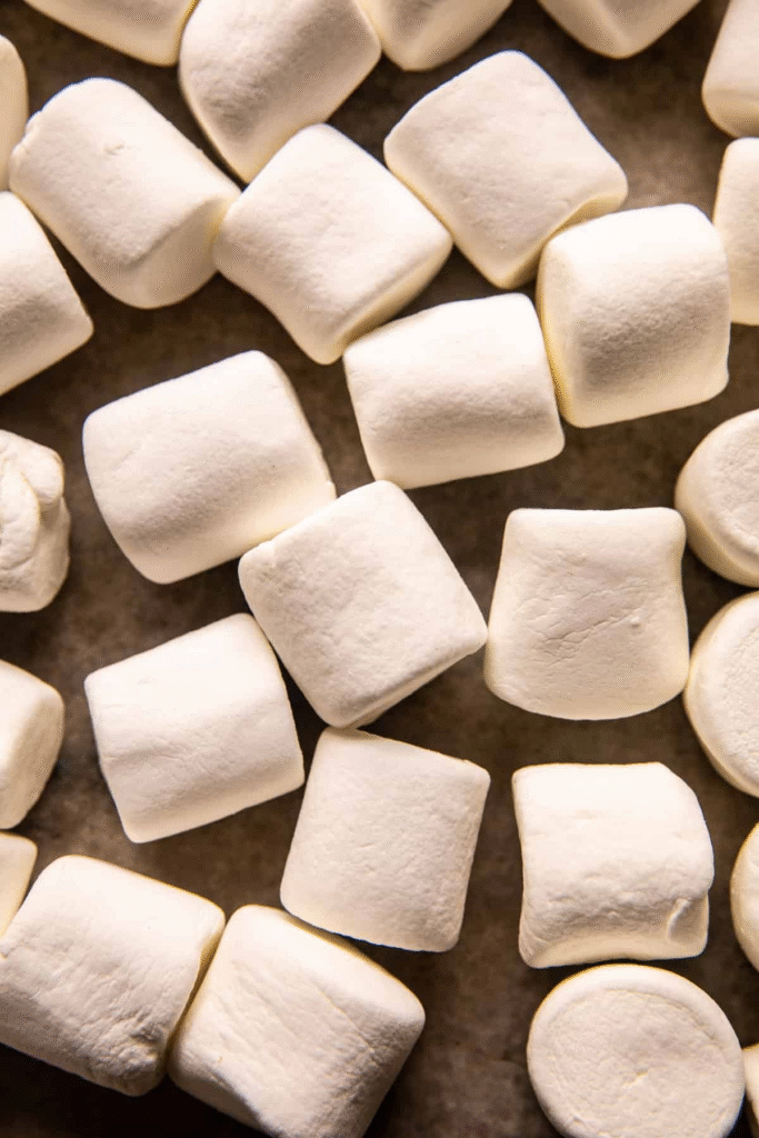 First thing’s first—roast those marshmallow. The quickest way to do this? Use your oven’s broiler. Just lay them out in a single layer on a baking sheet and configure your oven rack to the second highest position.
